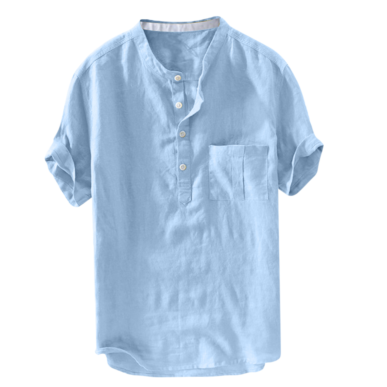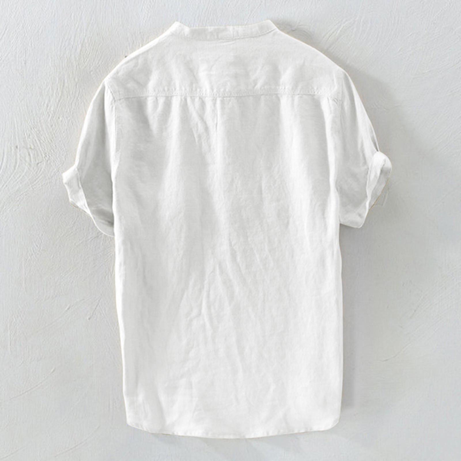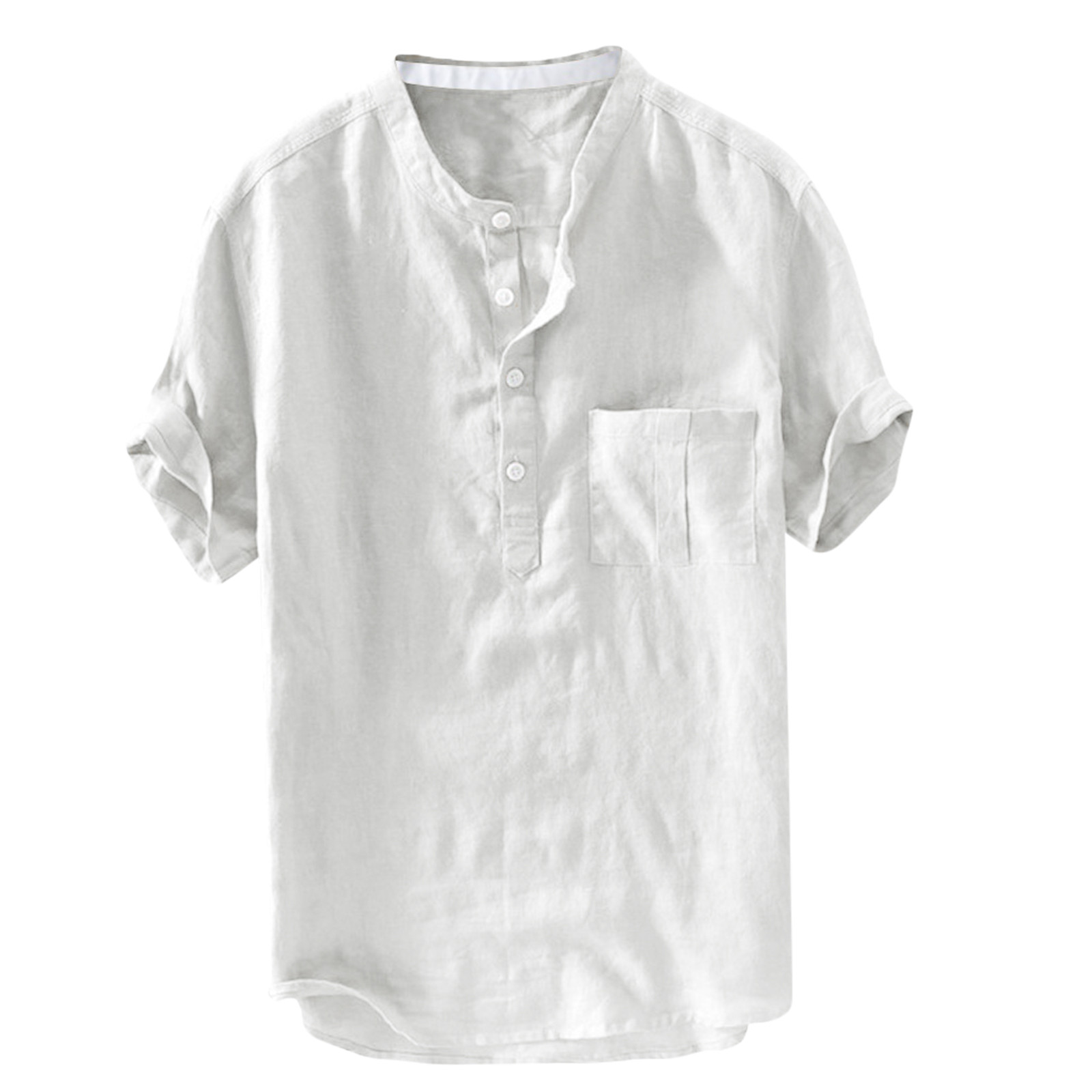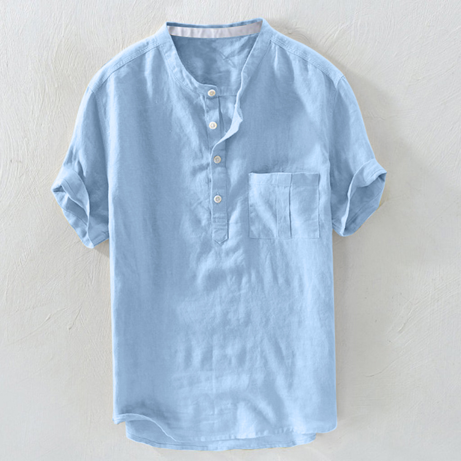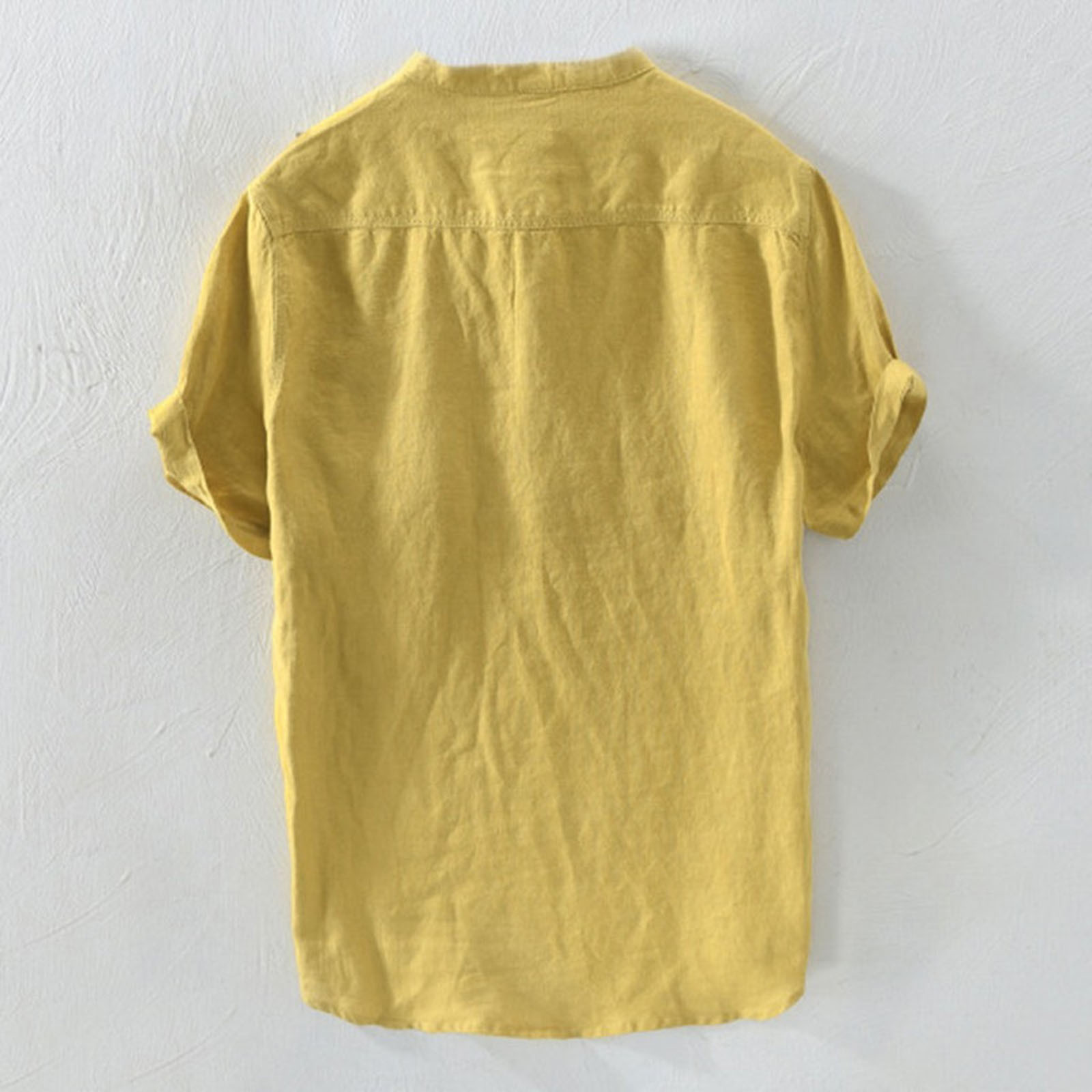 Мужская однотонная льняная футболка с короткими рукавами и пуговицами в стиле ретро