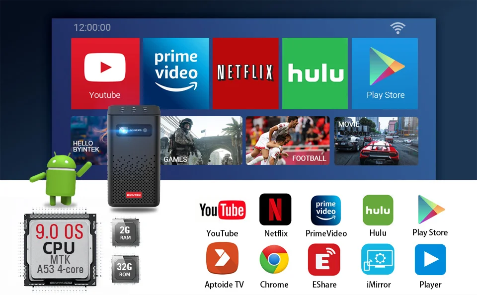 1) Встроенная умная последняя ОС Android 9,02) беспроводной дисплей кино игра для смартфона/ПК3) Автоматический вертикальный keystone4) Встроенный аккумулятор 5200 мАч5) Верхний уровень Встроенный 2 шт. 5 Вт динамик6) пылезащитный дизайн7) поддерживает несколько языков: английский, японский, французский, немецкий, итальянский, испанский, китайский, корейский, русский и т. Д.