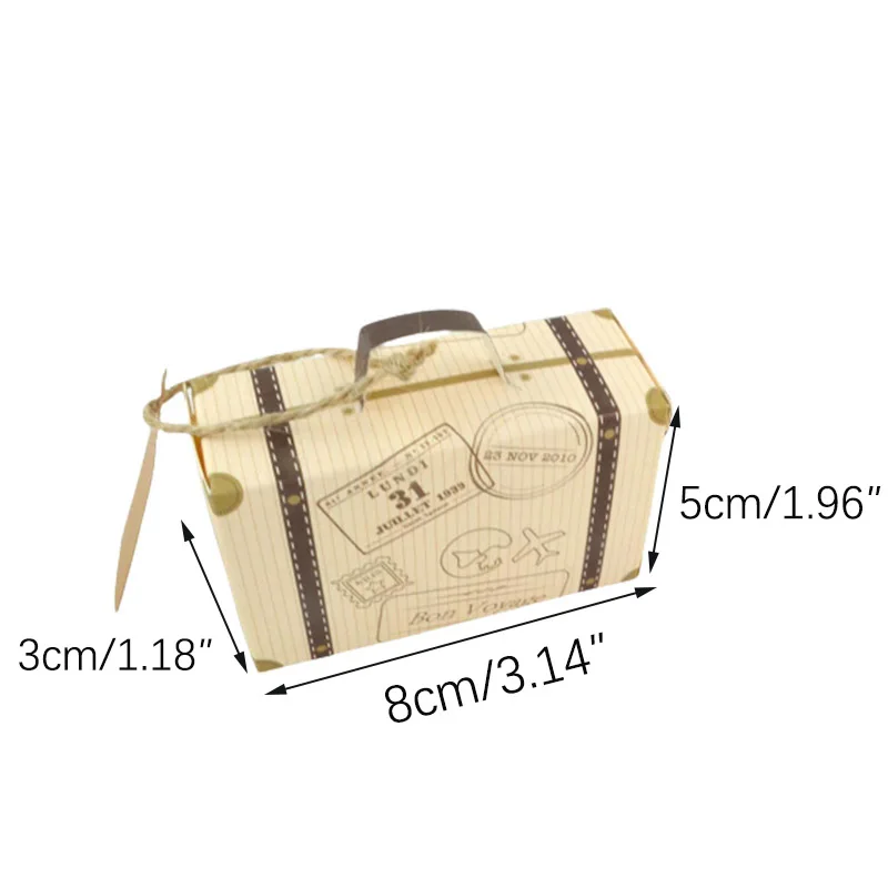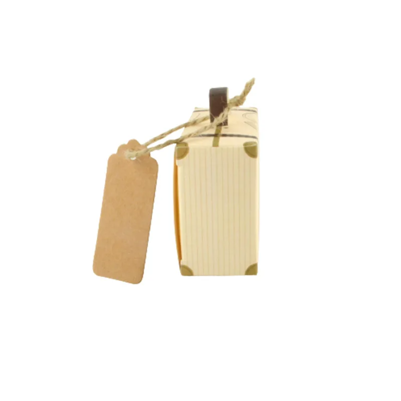 50 шт., крафт-бумага, минимальный Дорожный чемодан, Подарочная коробка для конфет с бирками и веревкой для гостевых, детских душевых коробок, декор для свадебной вечеринки