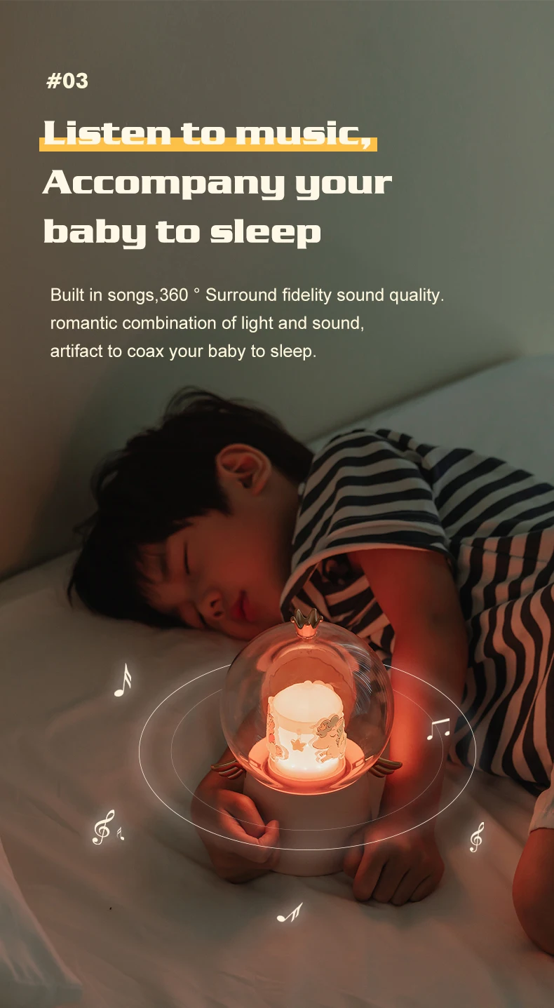 1. Эта музыкальная шкатулка в виде хрустального шара светодиодный ночной Светильник поставляется с теплым светильник; Природа белый светильник, 7 цветов Успокаивающий ночной Светильник и красочный светильник Marquee.