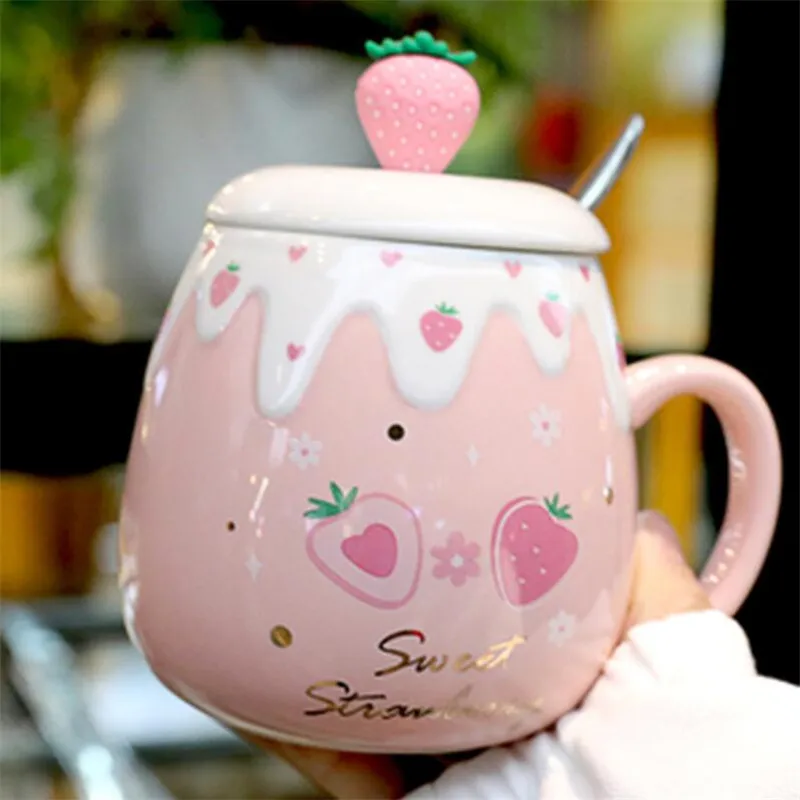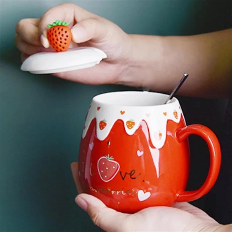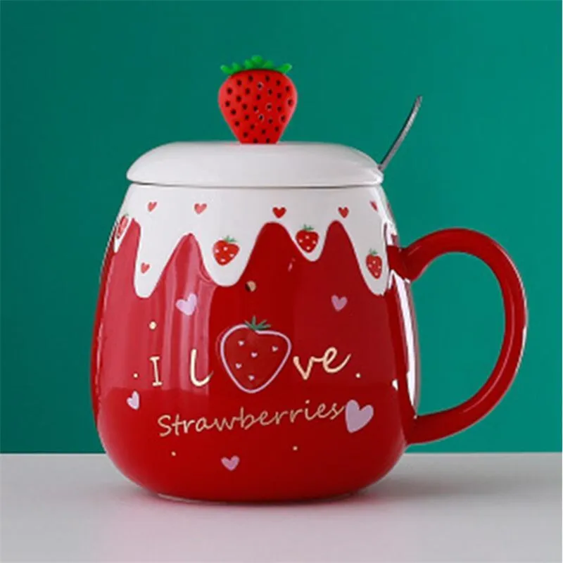 Стиль: милые фруктовые кофейные кружки клубники с крышкой ложкой