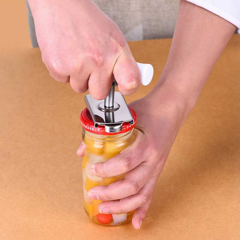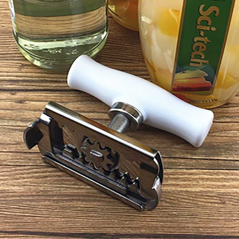 2. Поместите открывалку для бутылок на крышку и поверните ручку по часовой стрелке, чтобы отрегулировать зажим до максимального размера;