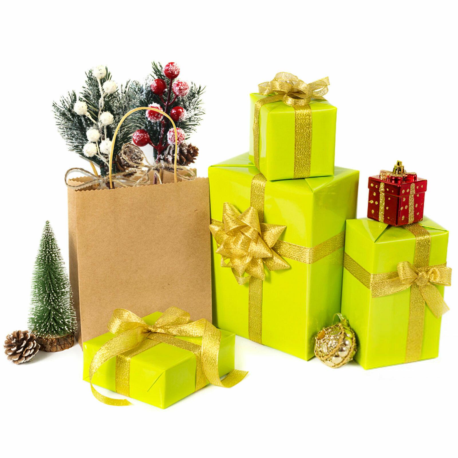 Эти крафтовые палочкиУ вас есть листья, красные ягоды Холли и сосновый конус, стекающиеся со снегом, каждый плотно прикрепляется к гибкой палочке для рукоделия, отлично подходит для подарочных украшений или праздничных ремесленных проектов