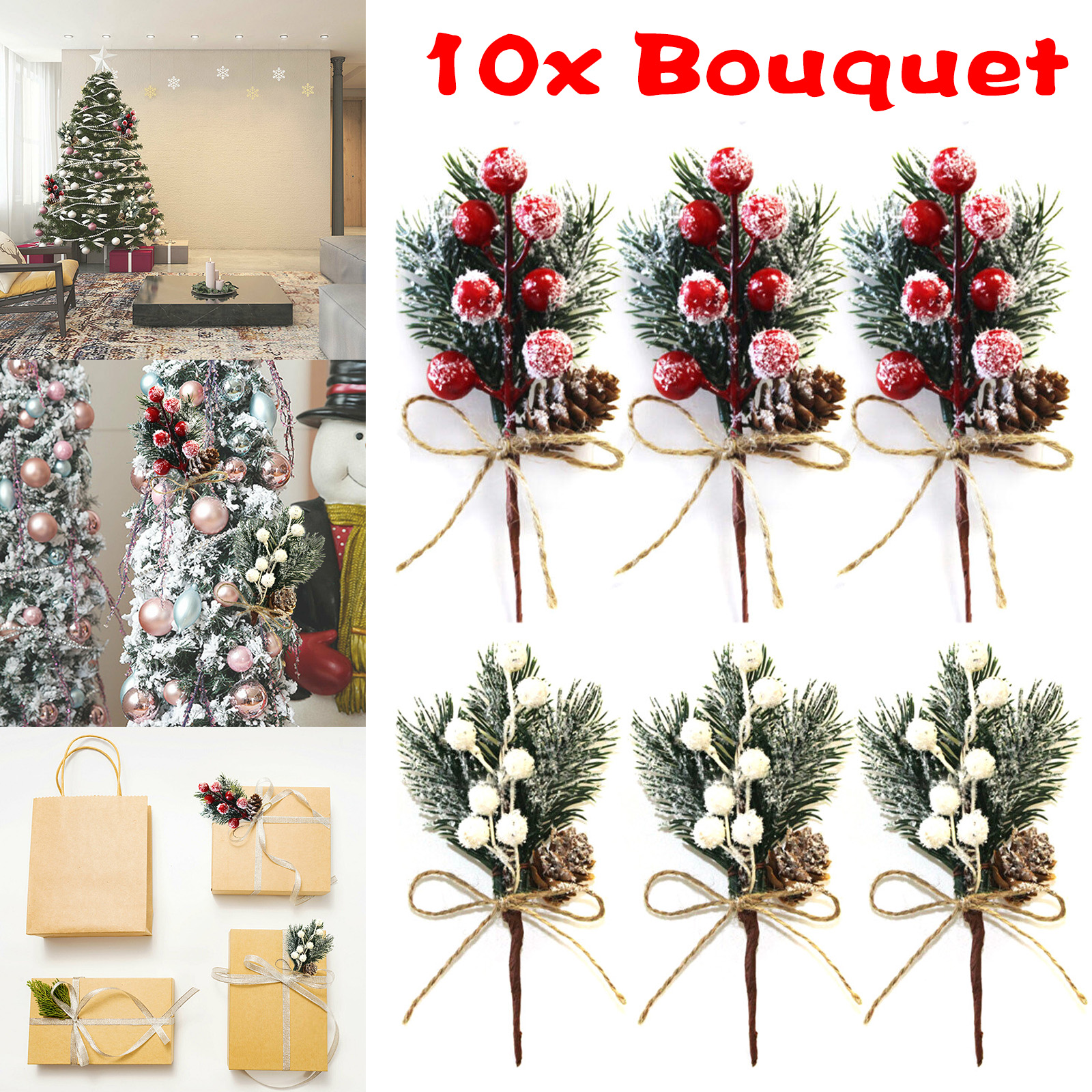 10 шт. рождественские искусственные сосновые ветки ягоды Холли цветок букет выбрать Рождественский Декор Орнамент Горячий