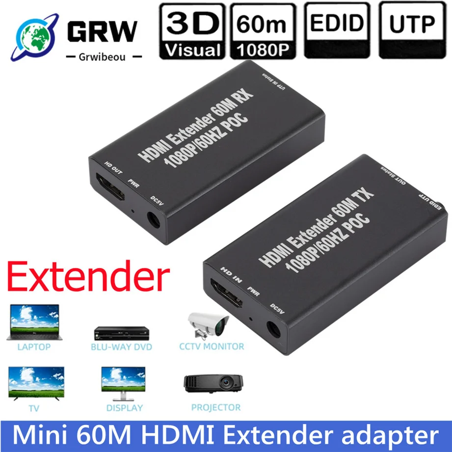 3,60 м сетевой кабель высокой четкости без потерь передачи HDMI удлинитель нужен только сетевой кабель cat6/cat6a/cat7 для замены кабеля HDMI для расширения сигнала HDMI на 60 м, проблема разрыва расстояния передачи дорогостоящего кабеля HDMI. Экономьте деньги и пространство