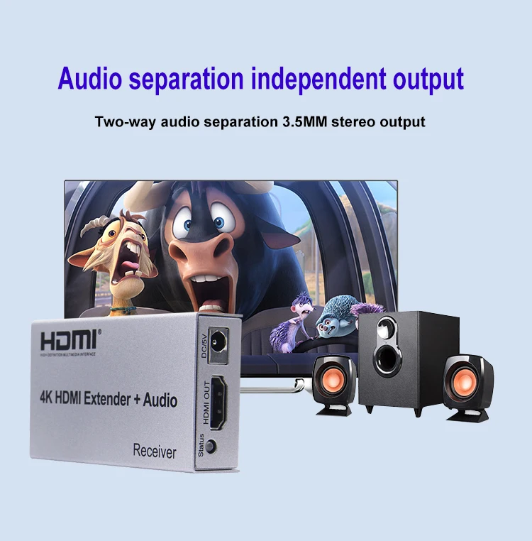 Расширитель использует один кабель cat5e или cat6 (рекомендуется) вместо кабеля HDMI для передачи сигнала высокой четкости до 100 метров, что снижает стоимость. Расширитель предназначен для передачи сигнала высокой четкости на большие расстояния.