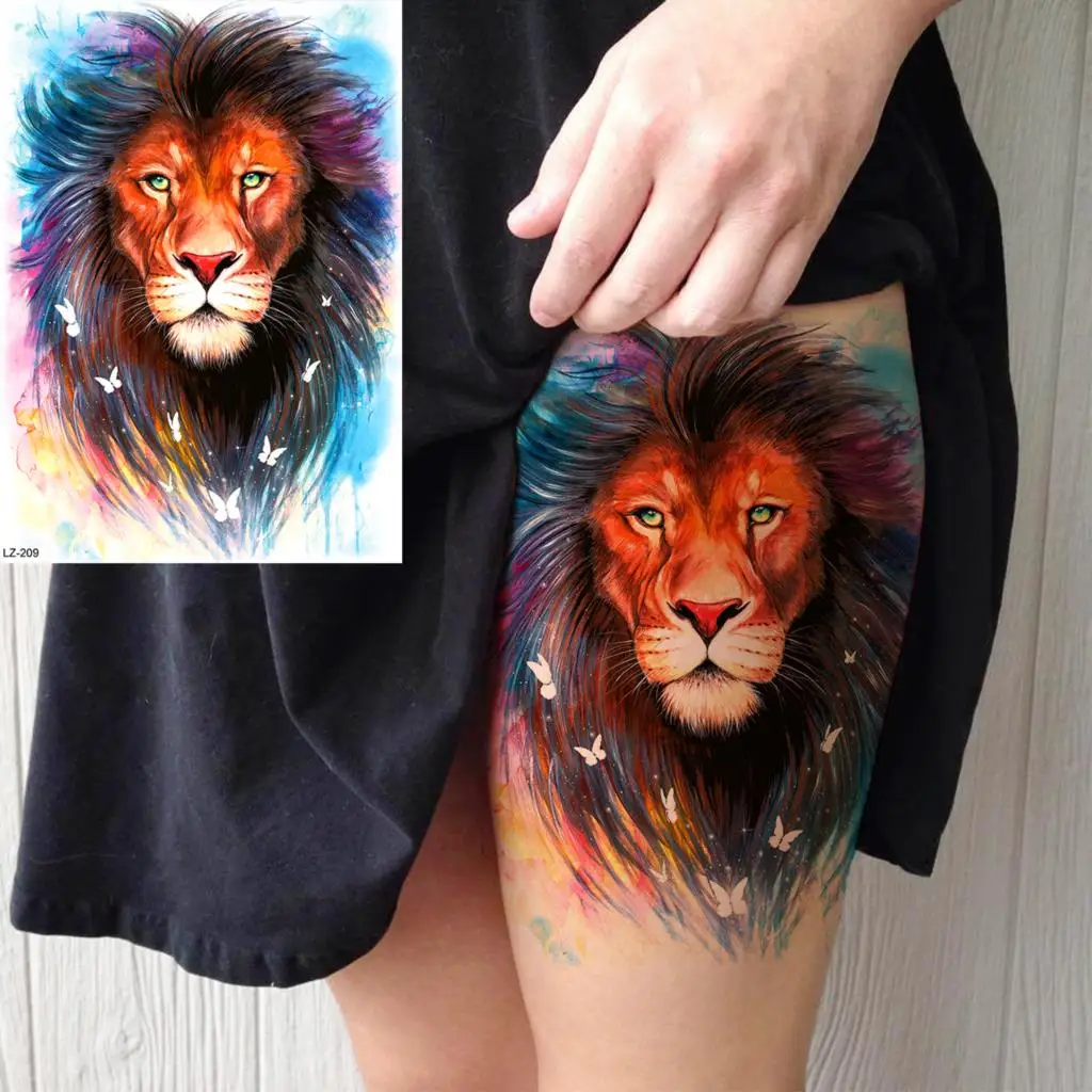Временные татуировки для мужчин, женщин, мужчин, Льва, волка, леса, поддельные татуировки, водонепроницаемые татуировки для художественной живописи тела