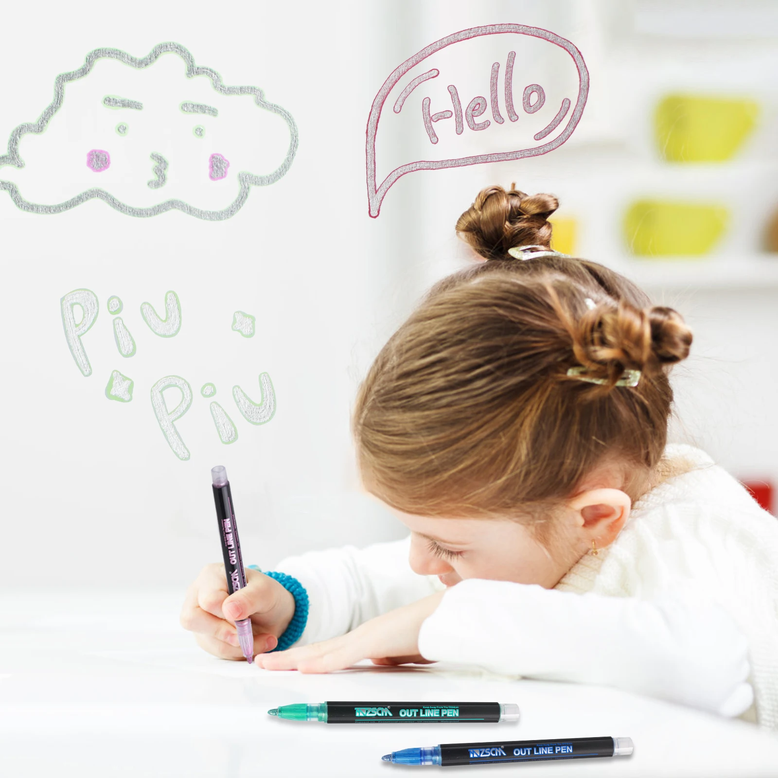 �� NON_TOXIC & быстрая сушка-Self-контур Маркеры цвета "металлик" особенности ультра-тонкая нейлоновая перо, быстро сохнет, нетоксичный, без запаха, подходит для людей всех возрастов, чтобы использовать в целости и сохранности. Дети до 3 лет должны использоваться под наблюдением взрослых