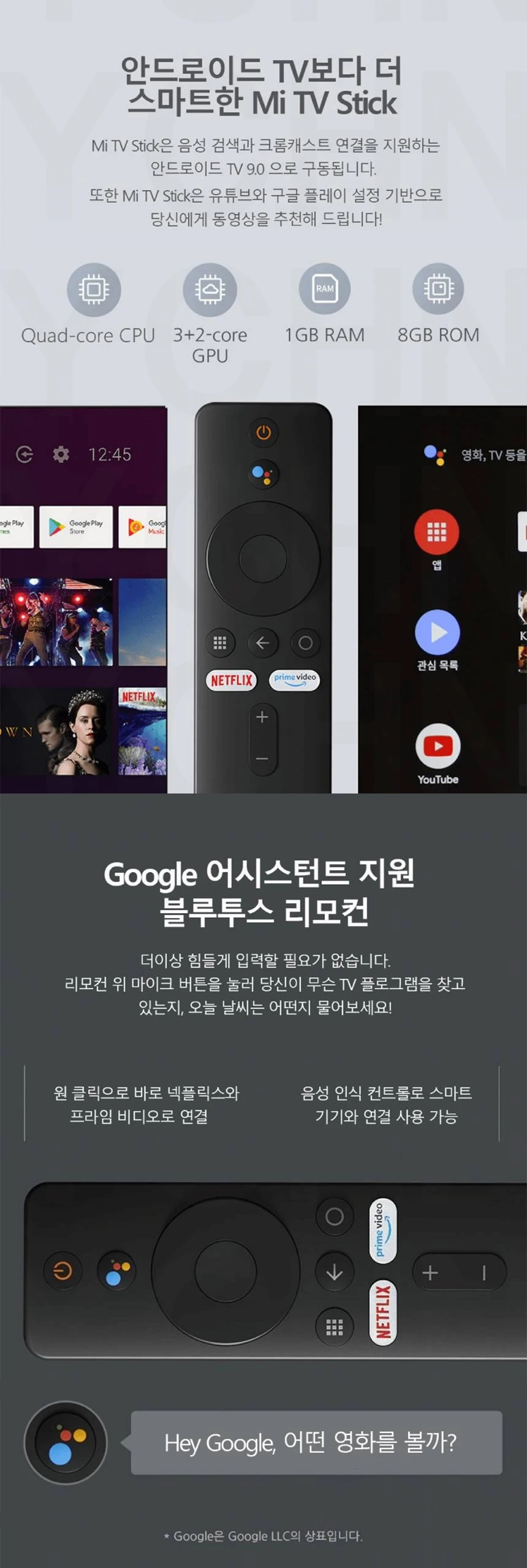 Mi TV Stick питается от Android TV 9,0, который поддерживает голосовой поиск и Chromecast и подключает вас к миру контента. Догнать на ваших любимых ТВ-шоу, играть в игры, смотреть новости или переключиться на радио. Mi TV Stick также рекомендует видео на основе ваших личных предпочтений Youtube и Google Play!