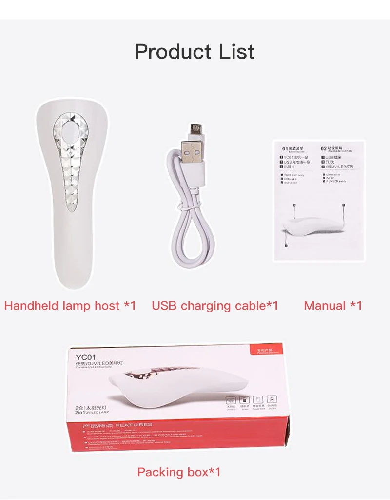 1 * лампа для ногтей, 1 * зарядное устройство UCB, 1 * Инструкция