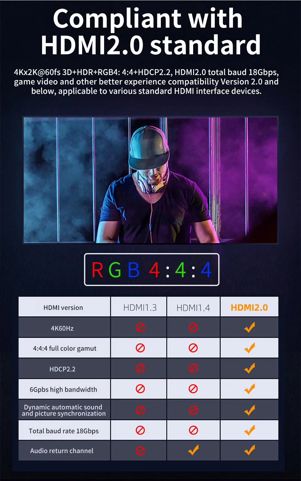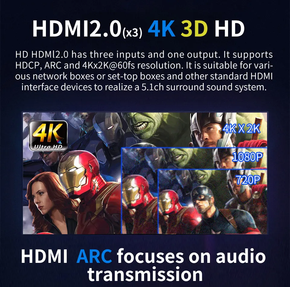 2: HDMI 2.0 resolution support 4Kx2K@60fs/30fs,1080p/1080i/720p/576p/576i/480p@24/50/60fs