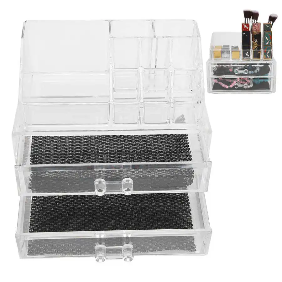 2. Поместите двухслойный выдвижной ящик для хранения, а затем поместите на него ящик для хранения помады.