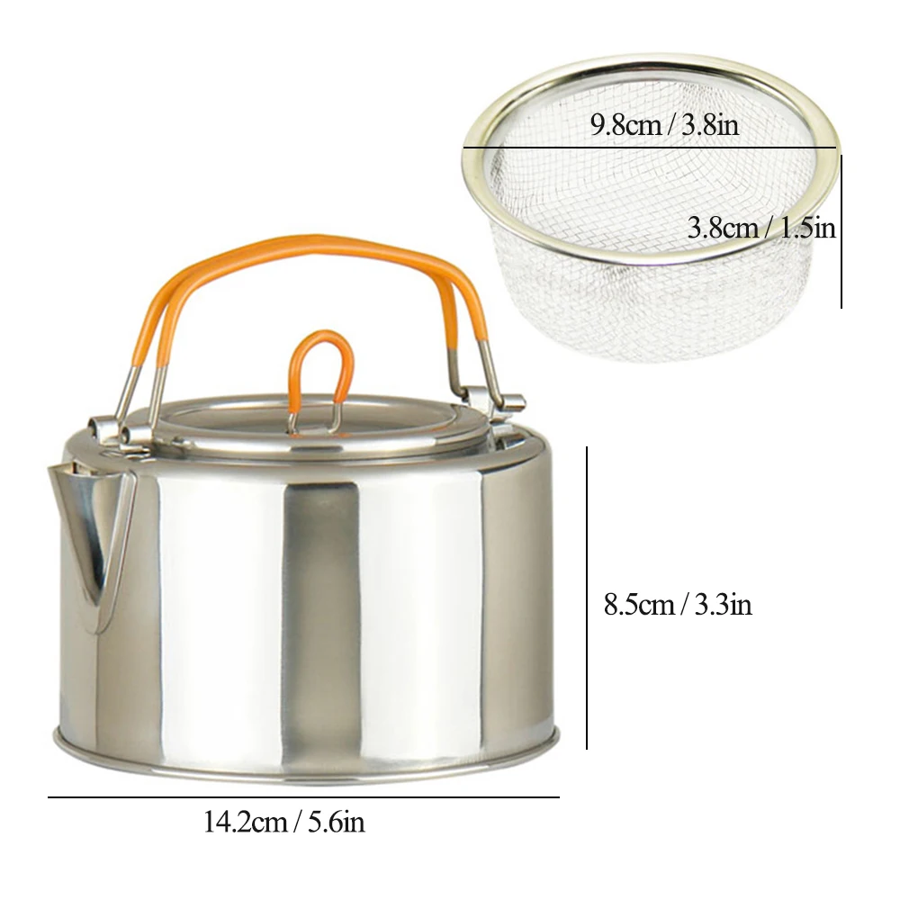 Чайник из нержавеющей стали 1L имеет двойные термостойкие ручки, очень удобен в использовании, отличный выбор для кемпинга, пеших прогулок, альпинизма и других видов активного отдыха.