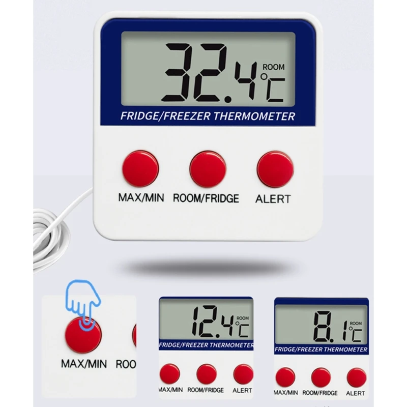 ЖК-дисплей, большие цифры. Вы можете визуально наблюдать за температурой, а также не занимать слишком много места. Максимальное/минимальное значение температуры на экране, вы можете легко контролировать изменение температуры вашего холодильника.