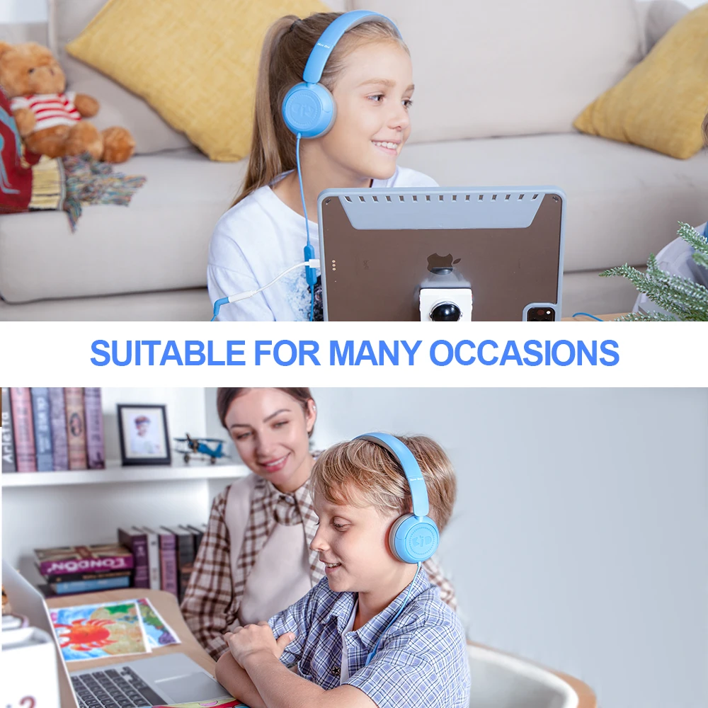 1. Расширенная комфортная одежда-весь корпус этой гарнитуры использует материалы для защиты окружающей среды (Белковая кожа + защита окружающей среды ABS ); Без обработки поверхности. Здоровый и безвредный. Высококачественные белковые кожаные наушники, удобные для длительного ношения. 2. Звуковая карта шумоподавления и HD вызов-HD 3D качество звука для прослушивания музыки, просмотра телевизора или фильмов. HD микрофон вызов, подходит для детей, чтобы узнать онлайн 3. Два уровня децибел: 85 дБ и 94 дБ, Защита слуха детей; С ключом воспроизведения/паузы (ключ воспроизведения/паузы работает для телефона, но не работает для компьютеров) 4. Эксклюзивный 2-в-1 встроенный контроль-поставляется с 3,5 мм аудио кабель для наушников и микрофонный сплиттер кабель; Подходит для iPad, для мобильного телефона, ПК (ios, windows), ps4, Kindle, и т. д. 5. Складная конструкция-наушники имеют складную конструкцию, которая позволяет аккуратно хранить их в рюкзаке Примечание. Пожалуйста, регулируйте микрофон рядом с вашим ртом для оптимального эффекта разговора 6. Прочный и долговечный в использовании (даже падает с высокого места); Можно скрутить головную повязку 7. Для чехла гарнитуры предусмотрены два мультяшных рисунка наклеек, дети могут изменить его по желанию.