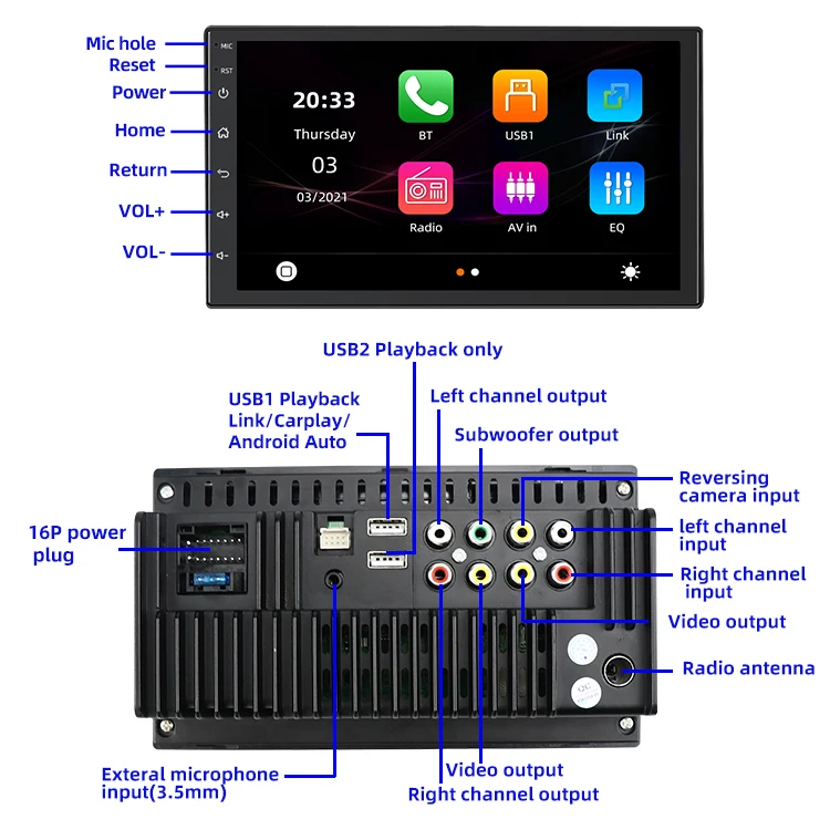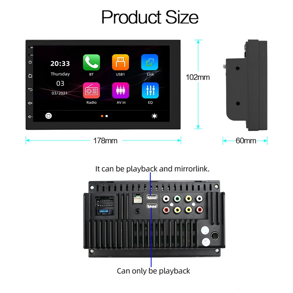 2din AHD Carplay Android 10 автомобильное радио AM FM 2.5D 7 ''Maltimedia Stereo DSP & RDS 2 ГБ + 32 ГБ Автомобильный dvd-плеер для Android / IOS