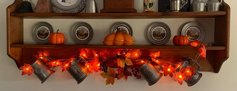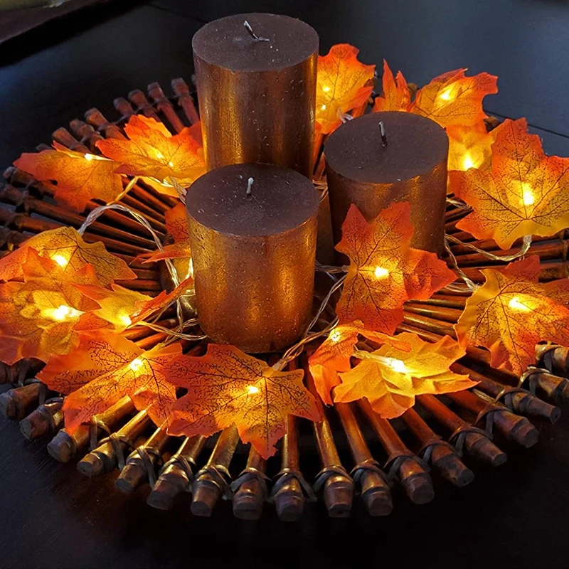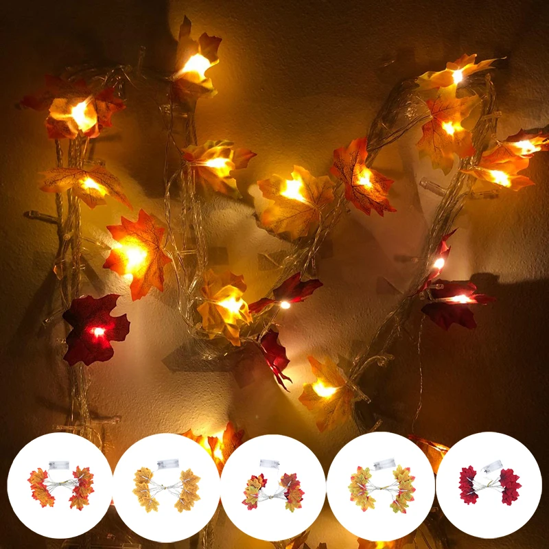 Посылка: 1 комплект на День Благодарения; Гирлянда с кленовыми листьями (без батареи)