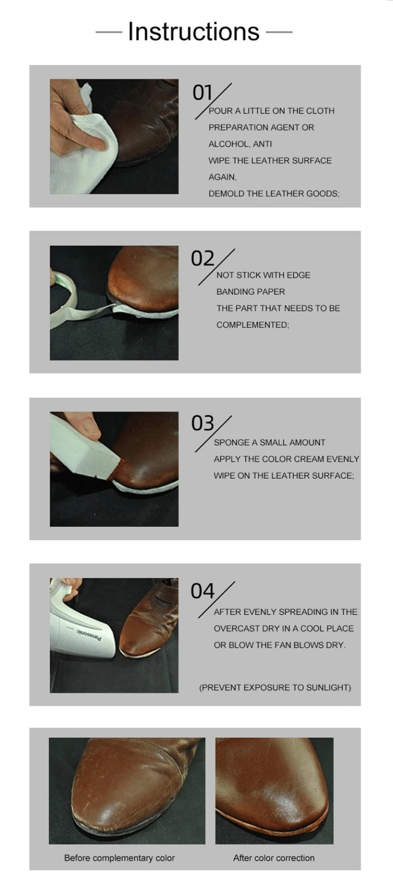Подходит для всех видов гладкой кожи, таких как кожаная обувь, кожаные сумки, кожаная одежда, кожаные диваны и т. д.