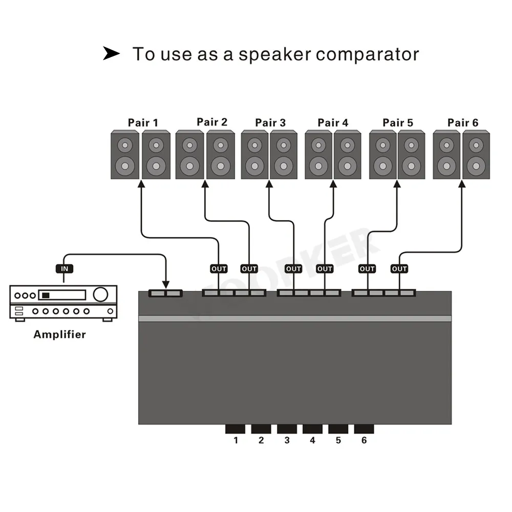 Этот выбор динамиков также может быть использован в противоположном направлении, представим, что несколько усилителей подключены к паре динамиков для настройки. Поскольку каждый стереоусилитель имеет свои звуковые характеристики, пользователь может подключать различные усилители мощности к переключателю, а затем выводить на ту же пару динамиков.