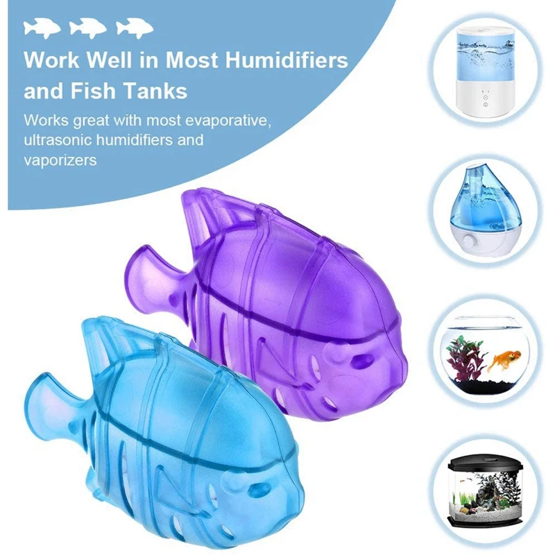 [Простой в использовании] Просто поместите симпатичную чистую рыбу в резервуар для увлажнителя, она будет плавать в аквариуме, увлажнителе. Один очиститель для увлажнителя может использоваться в увлажнителях с резервуаром размером до одного галлона. Заменяйте каждые 30-60 дней.