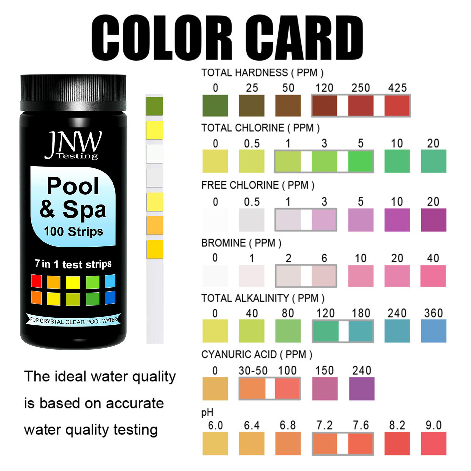 Портативный дизайн: 100 тест-полосок на бутылку. И бутылка маленькая и легко переносится. Используется тестовая бумага Для анализа (значение PH, общая Щелочность, твердость, нитрат, нитрит, Бром, общий хлор). Качество воды должно проверяться еженедельно. Наши Посылка тест-полосок включает 100 тестовых полосок. Тест-полоски используются для Проверить качество воды питьевой воды, бытовые краны, хорошо Воды, пресной воды прудов, аквариумов, бассейнов и т. Д. Скважин и труб или Плавательные бассейны легко загрязнены. Рекомендуется использовать это Тест-бумага часто проверяет качество воды. Точно измерьте свой pH Чтобы показать щелочное состояние, чтобы обеспечить безопасность вашего тела и воды.Инструкции: