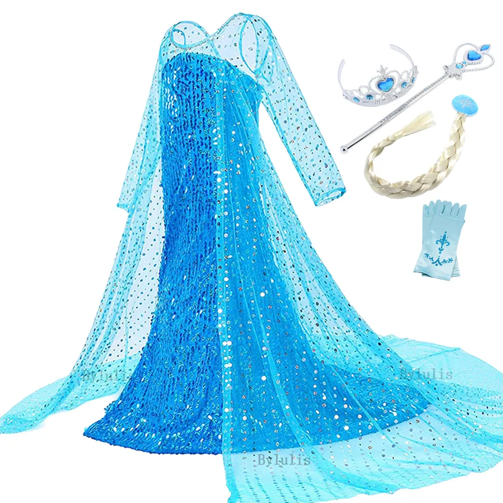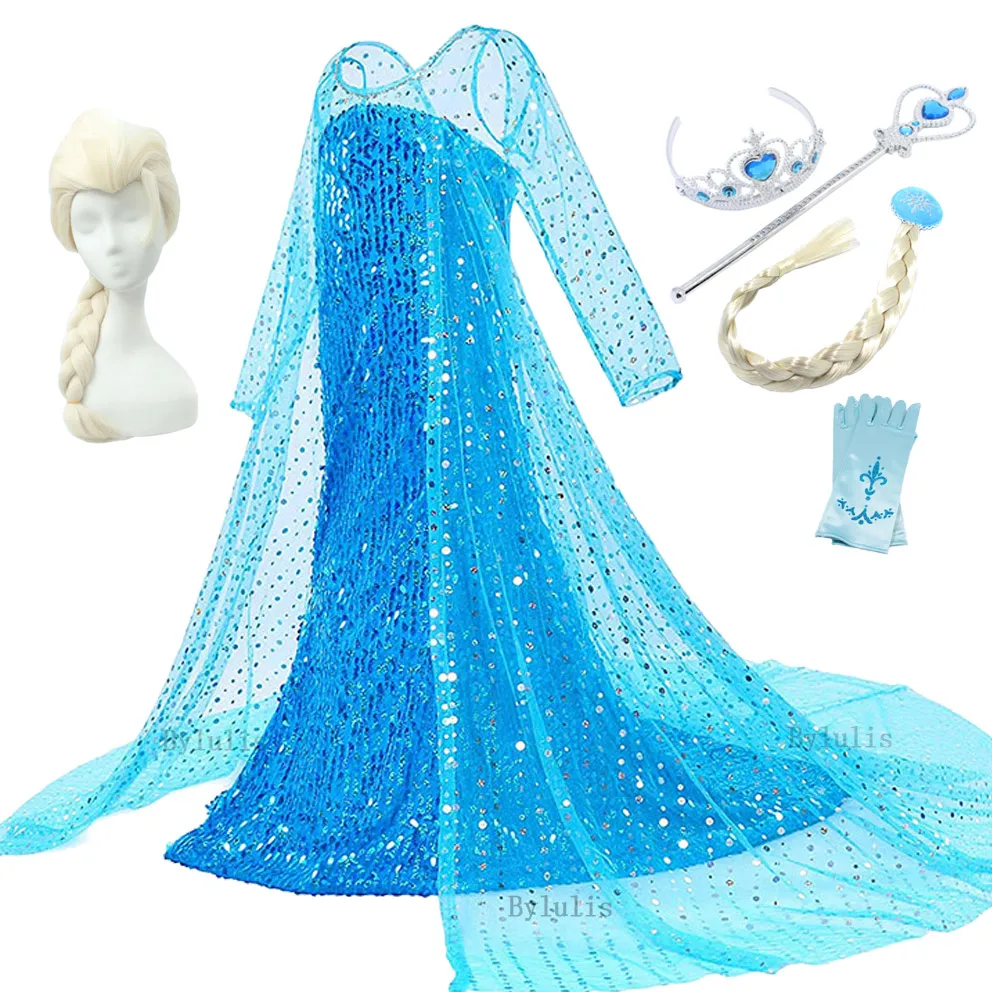6 шт. в комплекте:1 платье + 1 волшебная палочка + 1 корона + 1 косичка + 1 пара перчаток + 1 парик