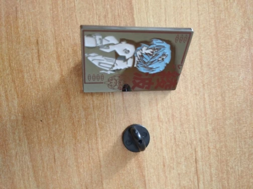 Pin came whole, no dents, stains. Painted carefully. Packed well, didn't communicate with the seller. Arrived packaged with other items ordered on the same day.