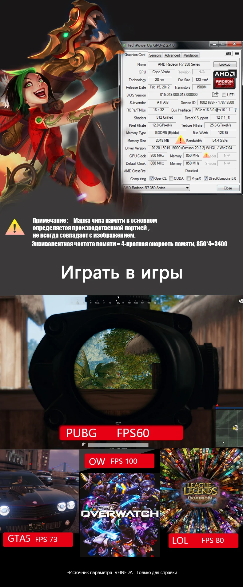Номер модели: видеокарта VEINEDA R7 350 2G
