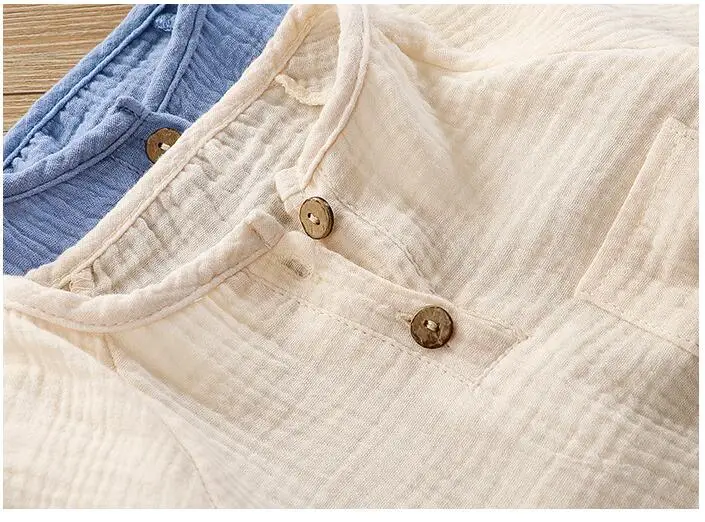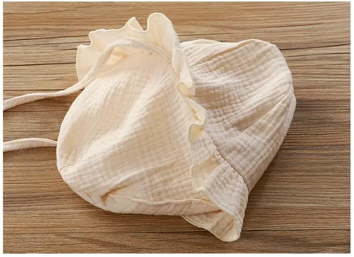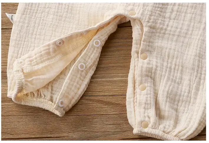 Детские пижамы; Одежда для малышей; Сезон весна-лето; Детский комбинезон из хлопка и льна; Двухслойный трикотажный костюм для ползания с шапкой