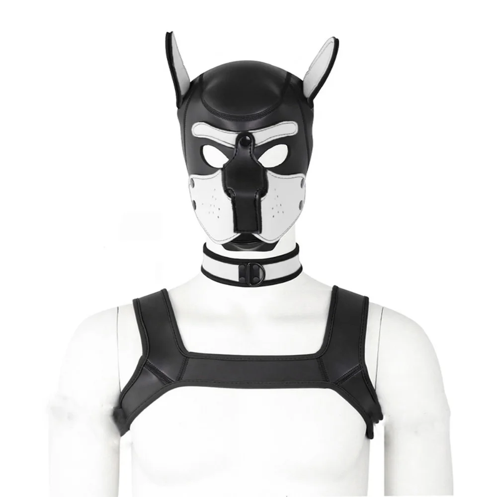 Маска с капюшоном для щенков, БДСМ, бондаж, Мужская нагрудная повязка на шею, ошейник, секс раб, домашнее животное, ролевые игры, Вечерние Маски, интимные игрушки для пар