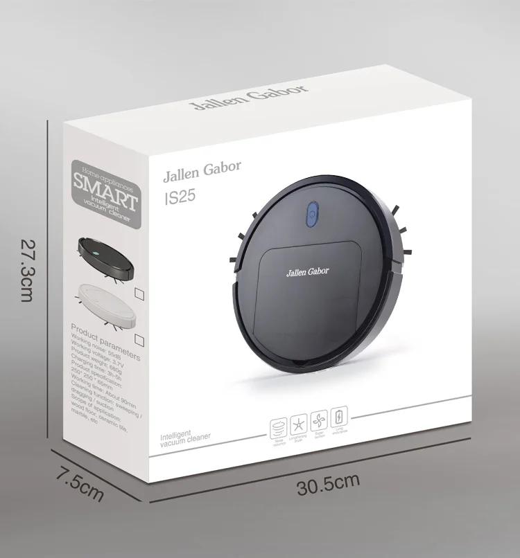 ES32 домашний автоматический 1800Pa умный робот пылесос уборочная машина для очистки пыли Характеристики: Умный очиститель может автоматически перемещать и очищать пол. Он также может автоматически менять направление, когда он встречает стены и другие препятствия. Это робот с низким уровнем шума, который работает тихо и не влияет на ваш отдых и работу. Этот умный робот подходит для земли: мрамора, плитки, деревянного пола и т. д. Название товара: умный очиститель Материал: АБС-пластик, металл Способ работы: механический Источник питания: USB Функция синхронизации: нет Номинальная Напряжение: 3,7 V Тип переключателя: обычная кнопка Маршрут очистки: случайный Условия обслуживания: домашнее хозяйство Пульт дистанционного управления: нет ЖК-дисплей: нет Виртуальная стена: нет Метод очистки: подметание, пылесос и уборка, 3 в 1 Батарея: 3,7 V/1500 мА/ч, Перезаряжаемые Батарея (все указанные аккумуляторы входят в комплект поставки) Время работы: около 100 минут Время зарядки: 1,5 ч Всасывание: 1800Pa Площадь уборки: 150 квадратных метров Номинальная мощность: 5 Вт Рабочая Напряжение: 3,7 V Характеристики: умный, перезаряжаемый, автоматическая чистка, низкий уровень шума Размеры: Диаметр: 32 см/12,60 ", Толщина: 6,8 см/2,68" (прибл.) Примечания: Благодаря светильник и экрана Цвет Товара может быть s светильник ly отличается из-за характеристик монитора компьютера. Возможны незначительные отклонения в размерах из-за различных измерений вручную.