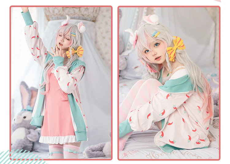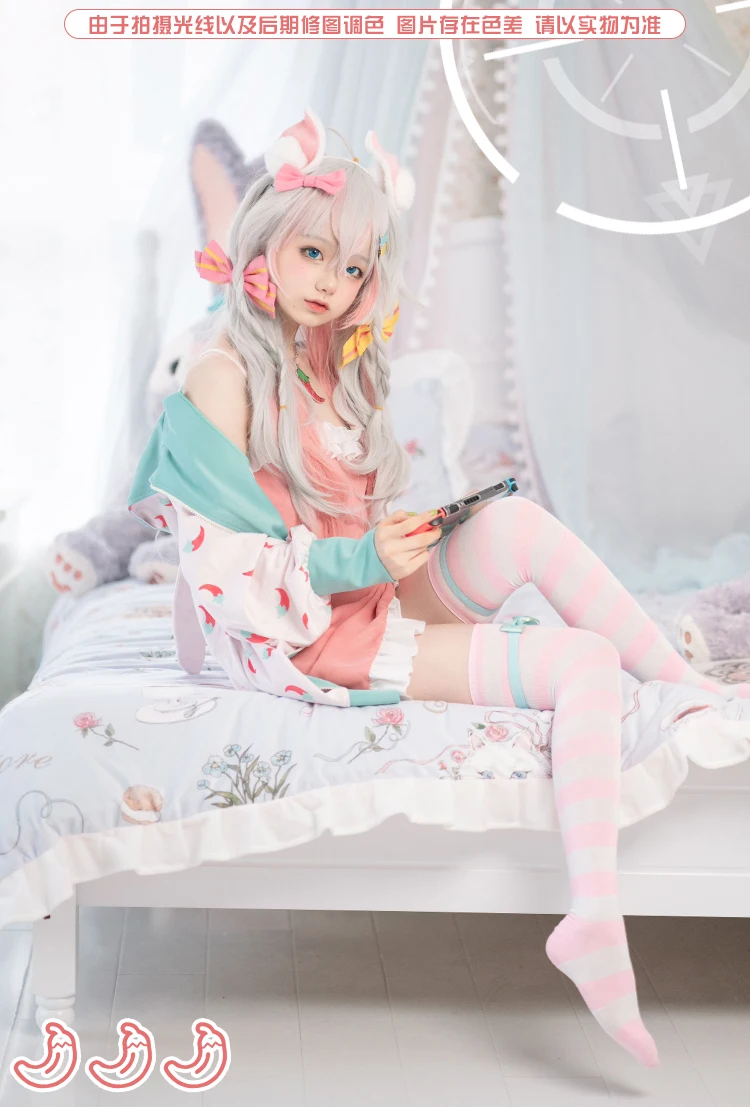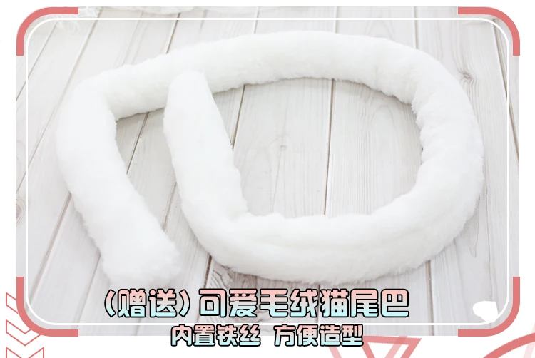 В комплекте:Пальто + платье + головной убор бант + повязка на голову с кошачьими ушками + ожерелье + ремни для платья + высокие носки до бедра + заколка для волос + хвост + Петля для ног.