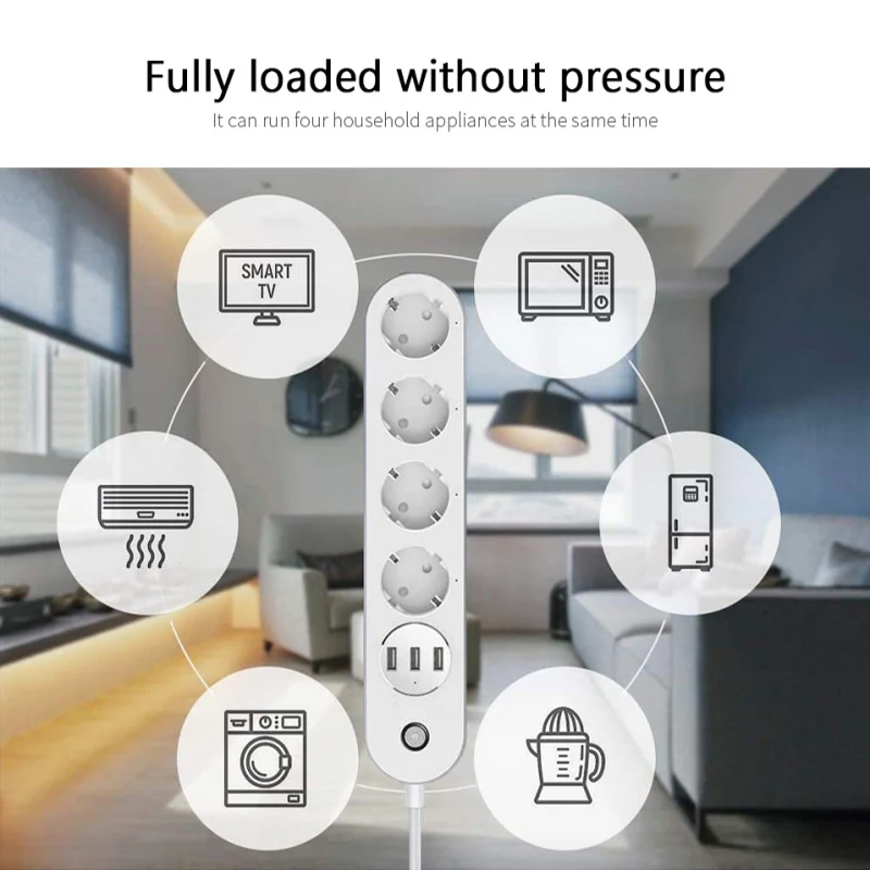 【 3 порта USB + 4 разъема 】 розетки контролируются независимо, а порты USB используются как