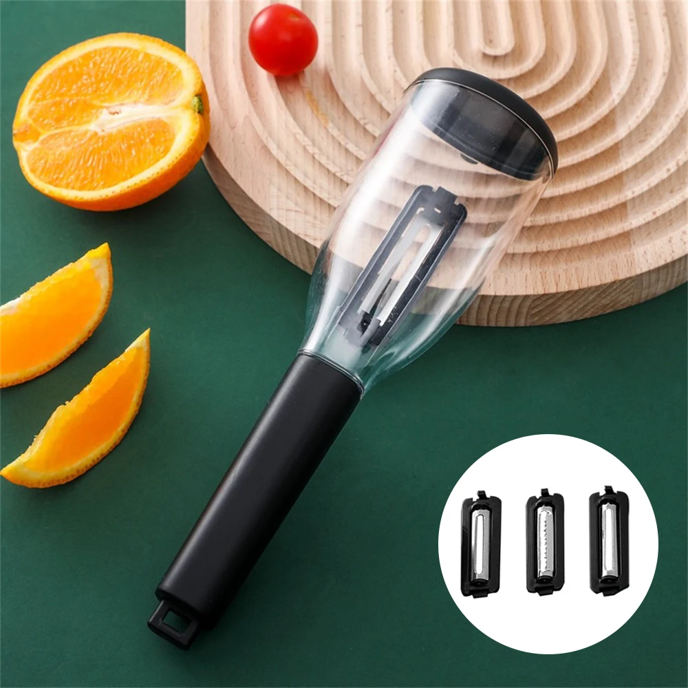 3 в 1 Овощечистка с контейнером измельчитель цитрусовых Апельсин Лимон инструмент для чистки картофеля, моркови лезвие Терка кухонные инструменты