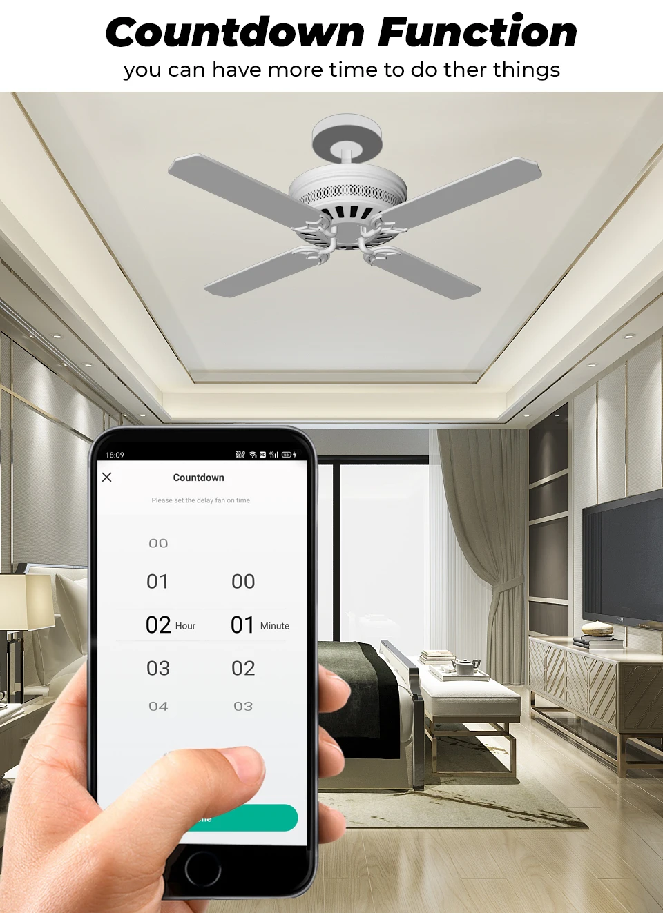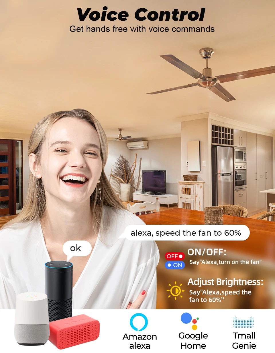 3. Программа Tuya, поддержка Amazon Alexa, Google Home, Tmall Genie, вы можете регулировать скорость по голосу