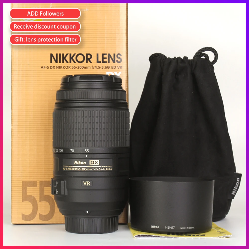 Объектив имеет фокусное расстояние от 55 мм до 300 мм и оснащен функцией снижения вибрации VR II от Nikon, которая обеспечивает съемку на дальние расстояния и проста в эксплуатации.