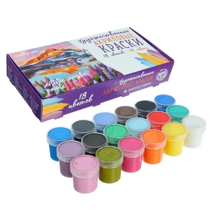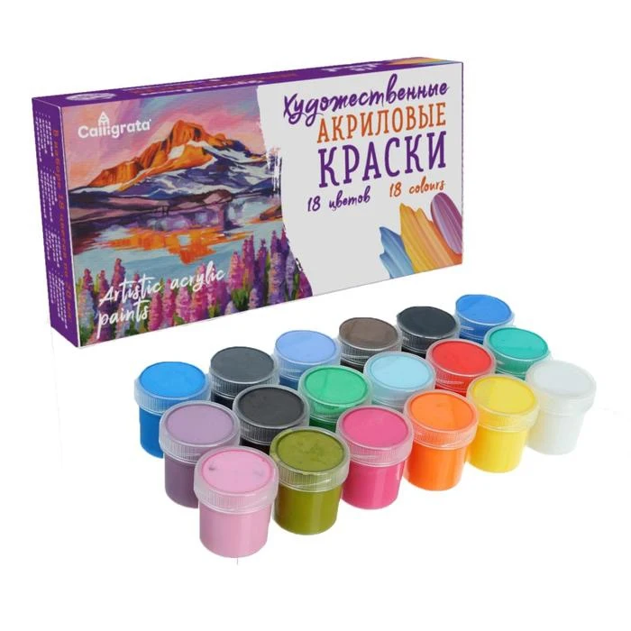 Краска акрил набор 18 цв по 20 мл Calligrata Художественная (морозостойкая), в карт.коробке
