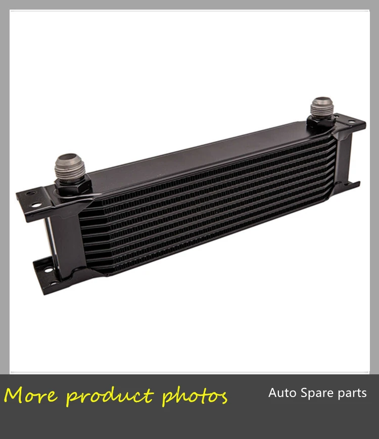 · Характеристики: удерживайте температуру масла на низком уровне, чтобы предотвратить повреждение или даже захват двигателя. Помогает снизить температуру охлаждающей жидкости и продлить срок службы двигателя. 10 РЯД Масляный радиатор в основном любит радиатор, для того, чтобы охладить моторного масла. Когда ваш двигатель вращается при высокой нагрузке при высоких оборотах, он создает трение и что тепло от этого трения передается в масло и чем масло перегревается, когда масло ломается, он не хорошо смазывается и сокращает срок службы вашего двигателя с течением времени.