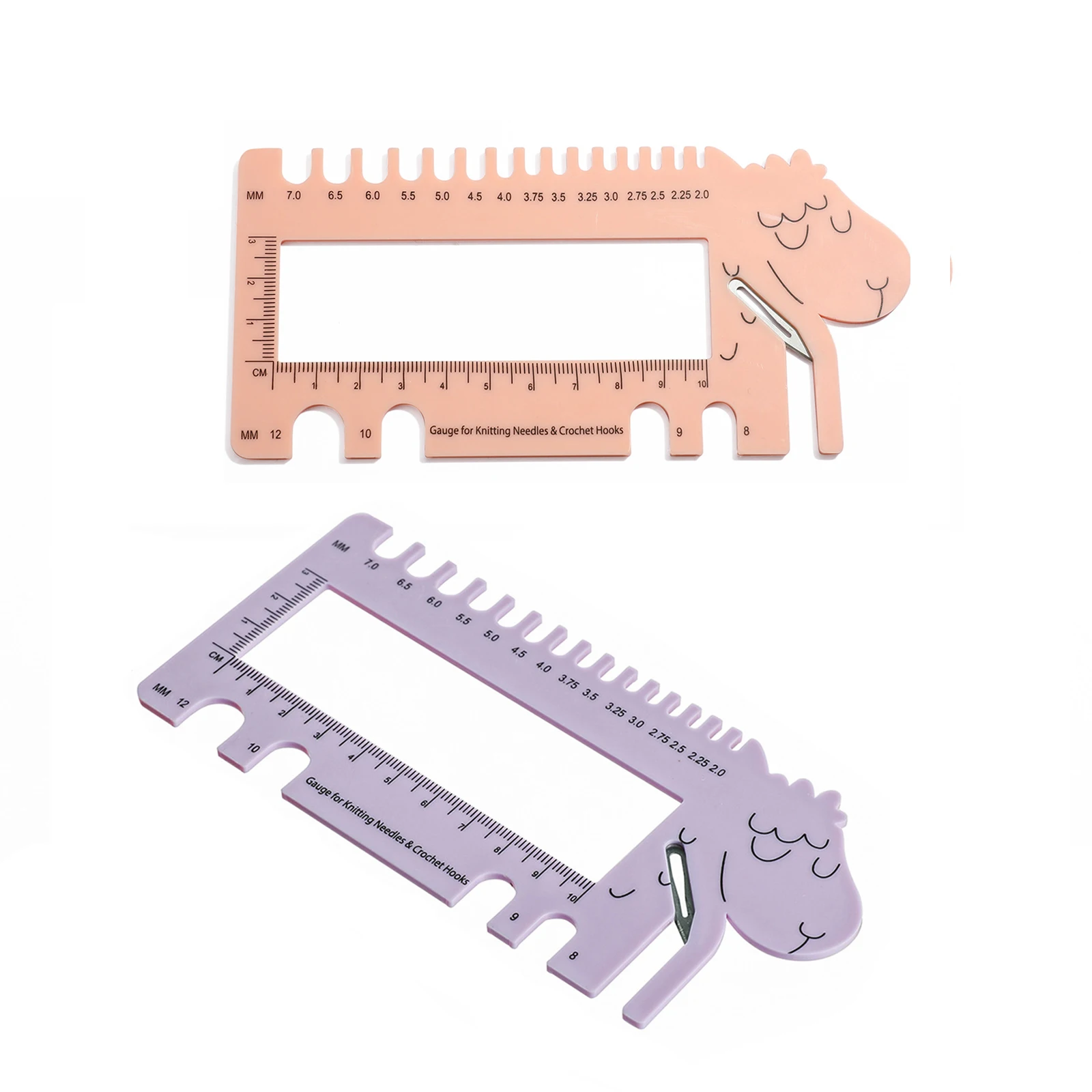 Головной датчик овец с ножницами розовый фиолетовый цвет датчик для вязальных игл и крючков для вязания крючком мм US UK Канада Размер Линейка Инструмент