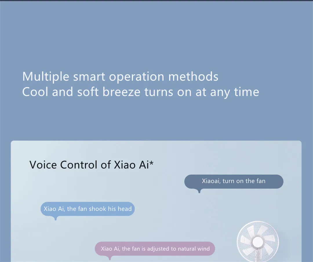 Холодный и мягкий бриз включается в любое время Голосовое управление Xiao Ai * Сяо Ай, Включите вентилятор Сяо Ай, веер мотал головой Xiao Ai, вентилятор регулируется на естественный ветер * Функция голосового управления должна быть реализована с помощью умных голосовых устройств, таких как колонки Xiaoai. Мобильный телефон Mijia APP Регулировка скорости ветра 100, время назначения 7 × 24 часов, вентилятор дистанционного управления при выходе. * Приложение Mijia должно быть доступно в вашем регионе, и оно может быть отложено или недоступно при использовании в некоторых странах. Пожалуйста, обратитесь к использованию другими людьми приложения Mijia в вашей стране, чтобы решить, стоит ли покупать. Интеллектуальная голосовая система Alexa может управлять большинством продуктов, поддерживающих приложение Mijia. Связь Xiaomi IOT, изменение скорости ветра с температурой * · С термометром Mijia Bluetooth и гигрометром вентилятор может автоматически регулировать скорость ветра в соответствии с комнатной температурой или влажностью в предварительно установленных смарт-сценах и держать ветер комфортным во все времена.