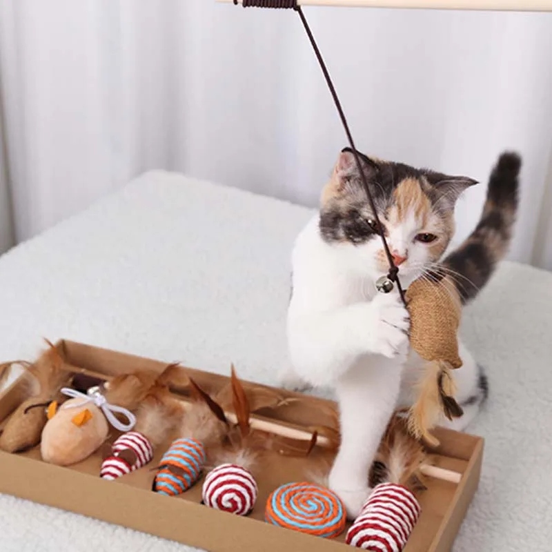 Материал товара: высококачественный деревянный столб + Высококачественный лен + перья, нетоксичные безвредные кошки.
