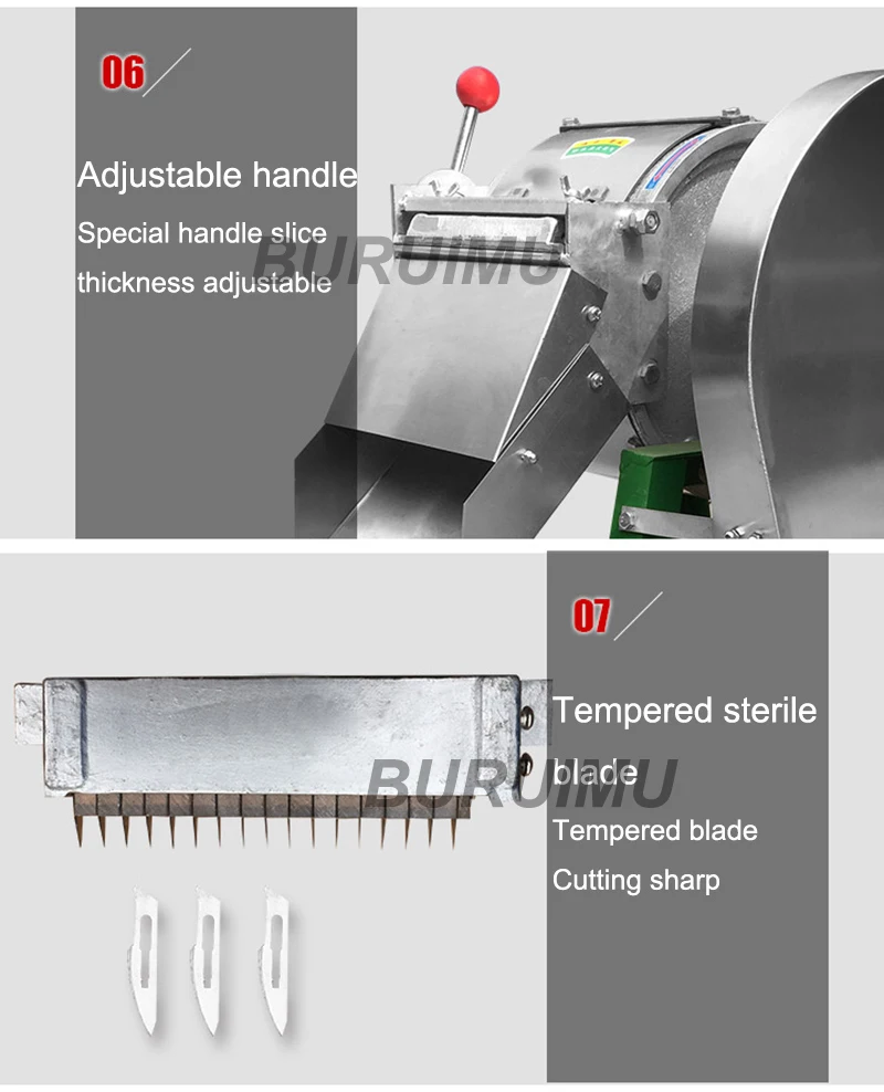 Машина основана на принципе центрифуги. Длина шелка выбирается случайным образом. Длина шелк определяется сырье. Длина порезов большого картофеля коротка, а порезы маленького картофеля короткие. Форма ломтиков определяется сырьем. Профессиональное отношение к обслуживанию, профессиональное техническое качество, каждая деталь строго проверена, все для вашего удобства. Ломтик: нарежьте до тех пор, пока нож установлен, и от 2 до 8 мм части могут быть получены путем регулировки Красной Ручки Шредер: когда нож для нарезки и нож для резки устанавливаются одновременно, кусочки вырезаются. Ширина шелка контролируется спецификациями режущего ножа, а толщина контролируется регулировкой ручки. Нарезанные кубиками полоски, снова помещенные в бочку для обработки один раз, затем нарезанные кубиками. Широкий спектр применения: столовые, ресторанные, пищевые киоски, военные столовые, школьные столовые, гостиничные буфеты.