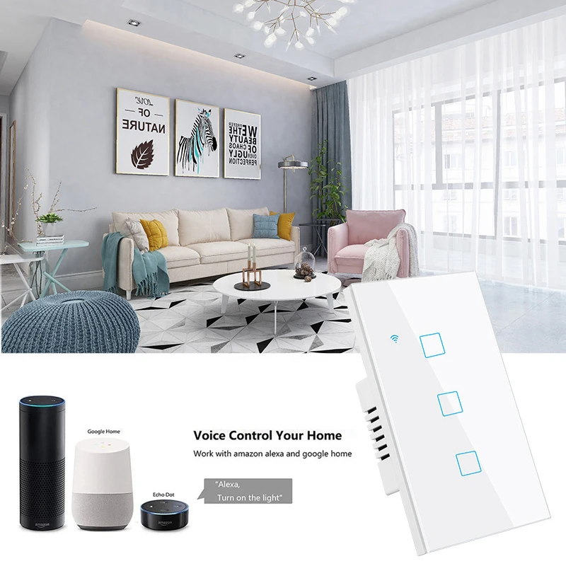 【Поддержка голосового контроллера 】 переключатель совместим с Alexa и Google Home Assistant, что позволяет использовать Голосовое управление smart switch для включения/выключения.
