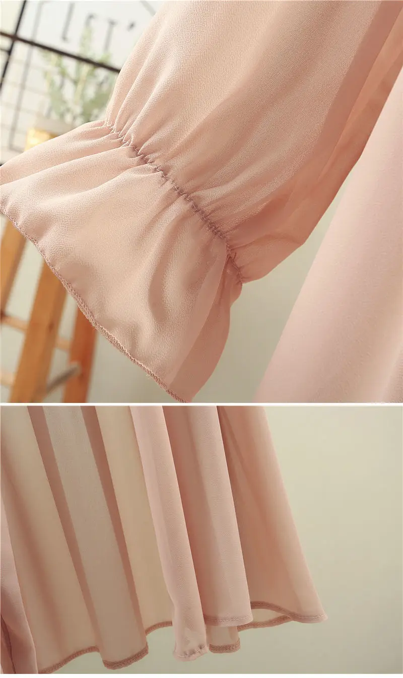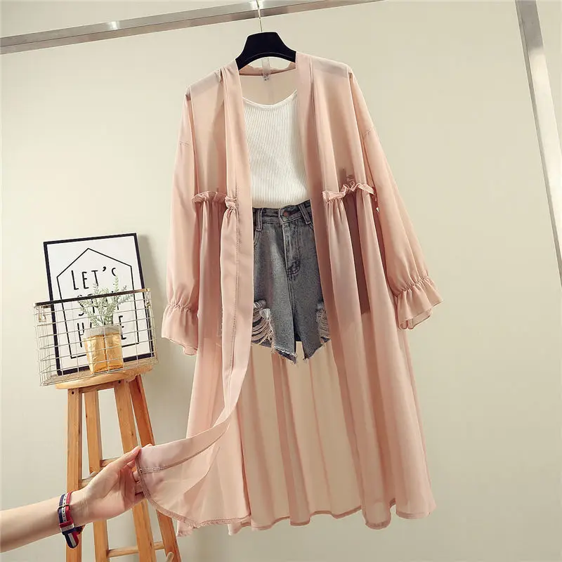 Материал: шифонПол: ЖенскиеТип размера: один размерТип рукава: длинный рукавОсобенности: однотонный, универсальный, удобный, с длинным рукавомОдин размер дюйма: обхват груди 41,7, длина 36,6