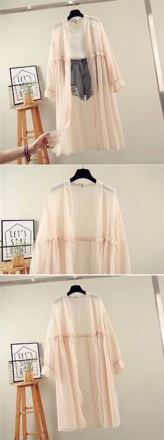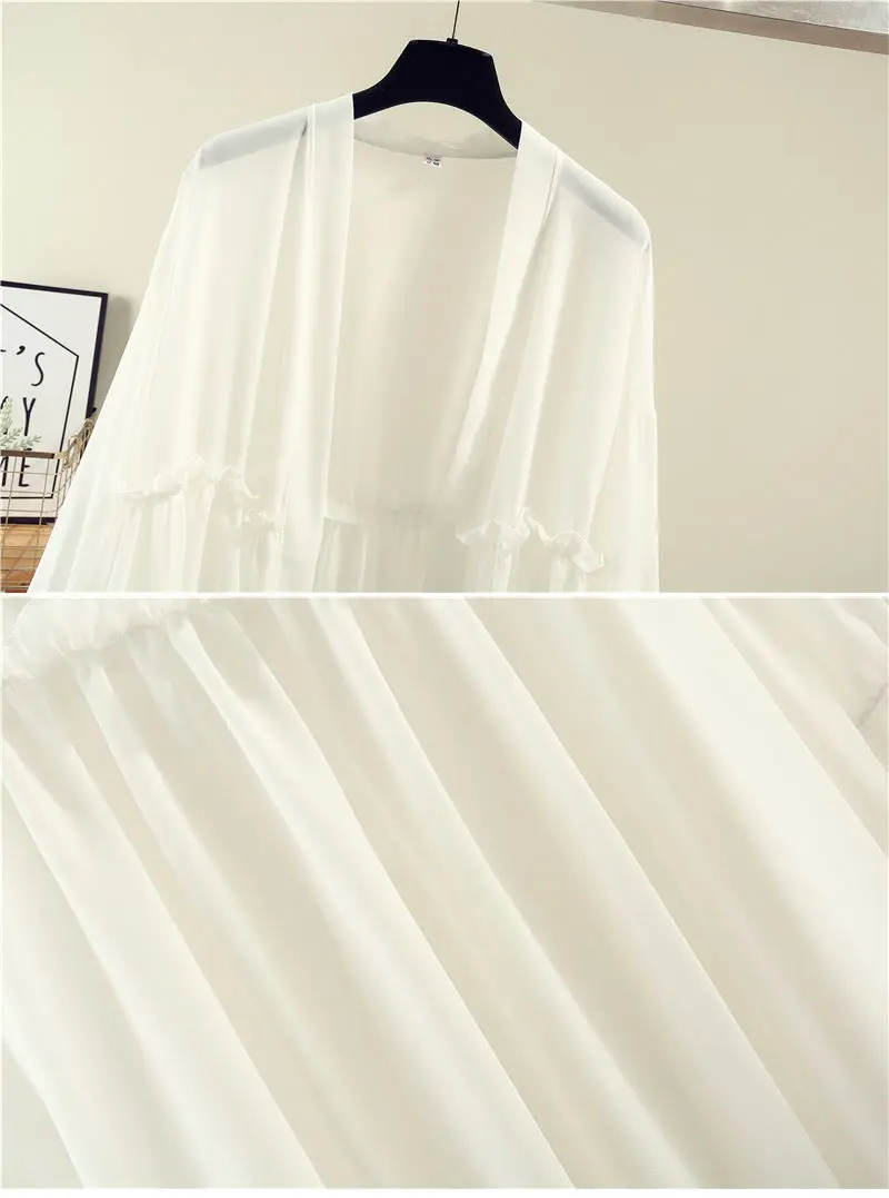 Богемная летняя пляжная одежда Geskeey, длинный кардиган-кимоно, однотонная Шифоновая туника, женские новые уютные топы, блузка, рубашка, саронг, пляж