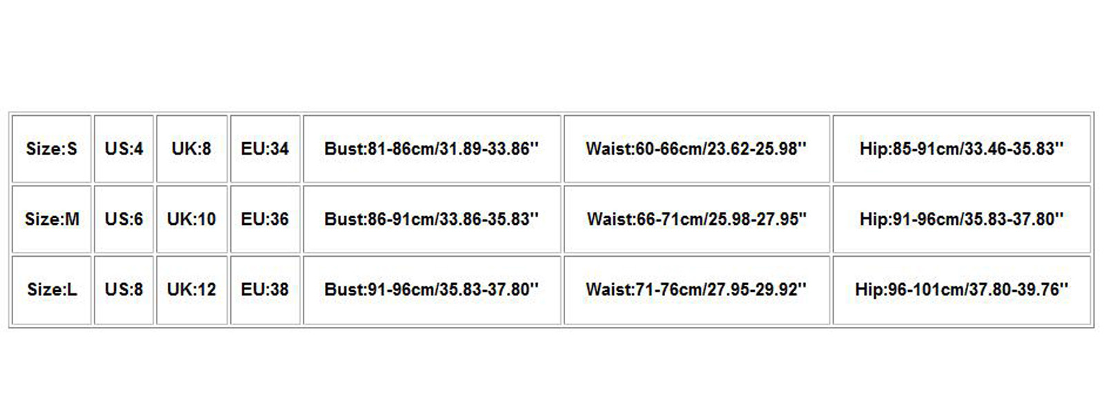 Размеры США Великобритания ЕС Бюст Талия Бедра S 4. 8 34 81-86 см/31,89-33,86'' 60-66 см/23,62-25,98'' 85-91 см/33,46-35,83'' М 6 10 36 86-91 см/33,86-35,83'' 66-71 см/25,98-27,95" 91-96 см/35,83-37,80'' L 8 12 38 91-96 см/35,83-37,80'' 71-76 см/27,95-29,92'' 96-101 см/37,80-39,76''