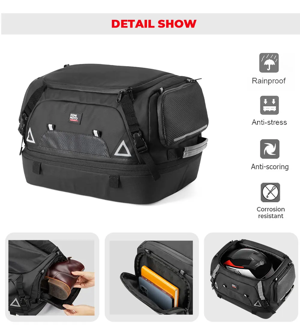 * Универсальное применение: задние Сумки для мотоциклов подходят для всех транспортных средств, они могут широко использоваться для большинства мотоциклов и транспортных средств