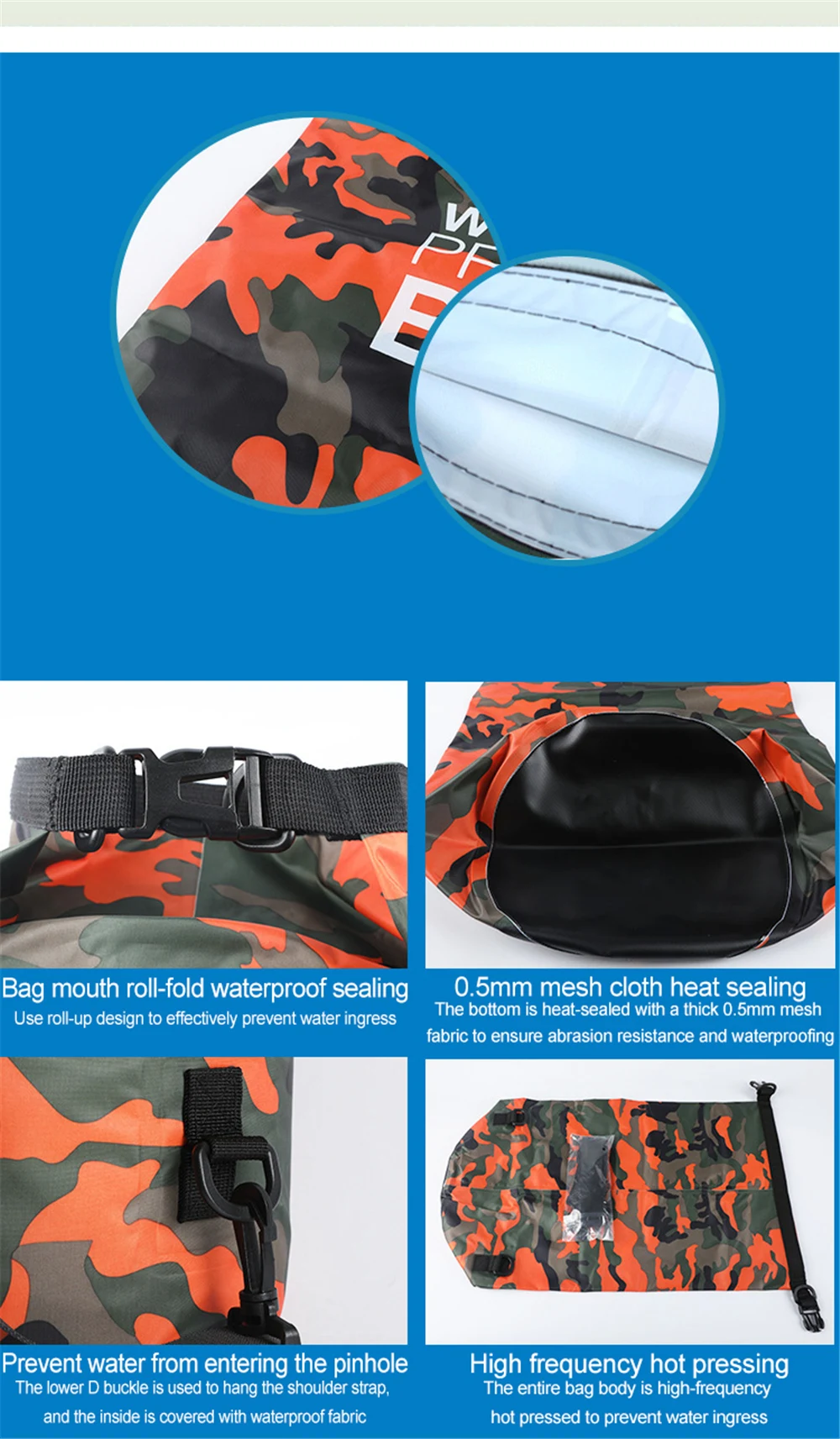 2L 5L 10L Водонепроницаемая сухая сумка, ПВХ Камуфляжный Рюкзак, Открытый рафтинг, Каякинг, рыболовная Сумка для плавания, сумка для хранения, Велосипедное оборудование