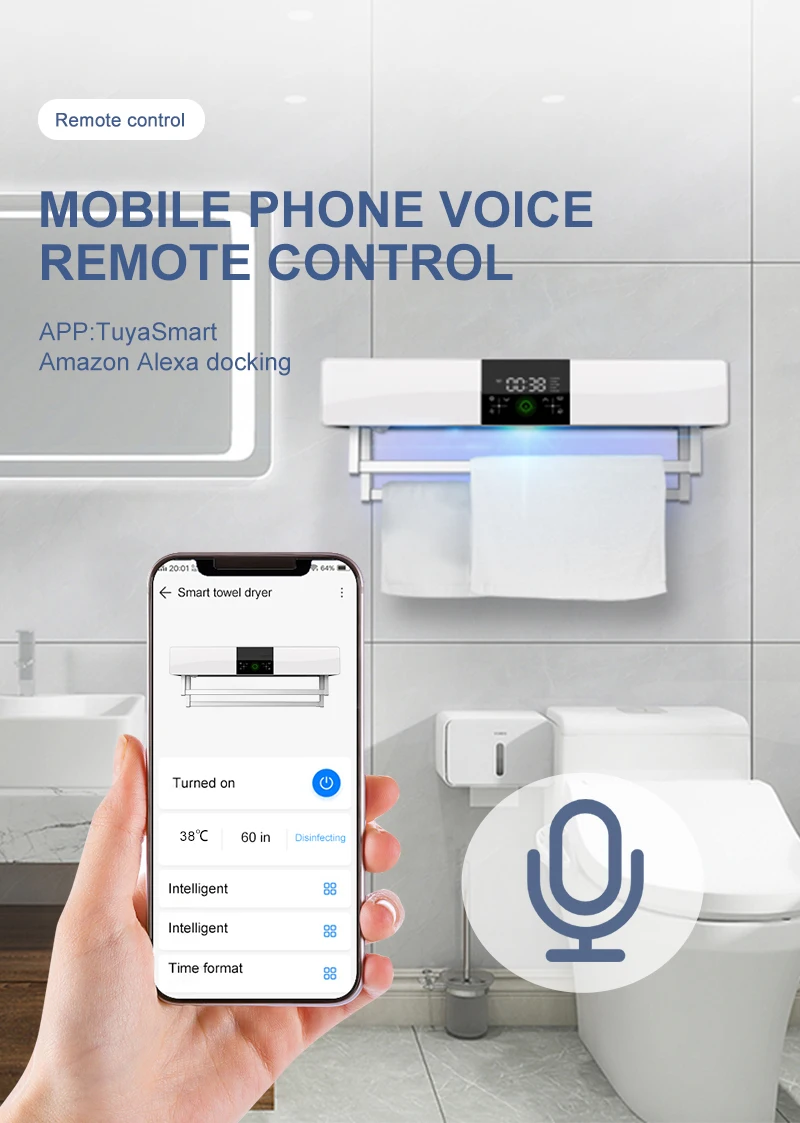 Bathroom Electric Towel Rack Tuya Intelligent Control Touch Screen Sterilizing Smart Towel Dryer Thermostatic Heating