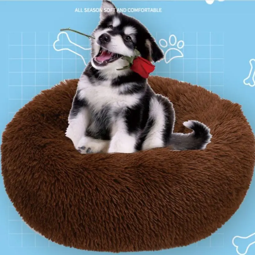 Эта круглая кровать для домашних животных в форме бублика очень удобная и просторная для вас собака или кошка.